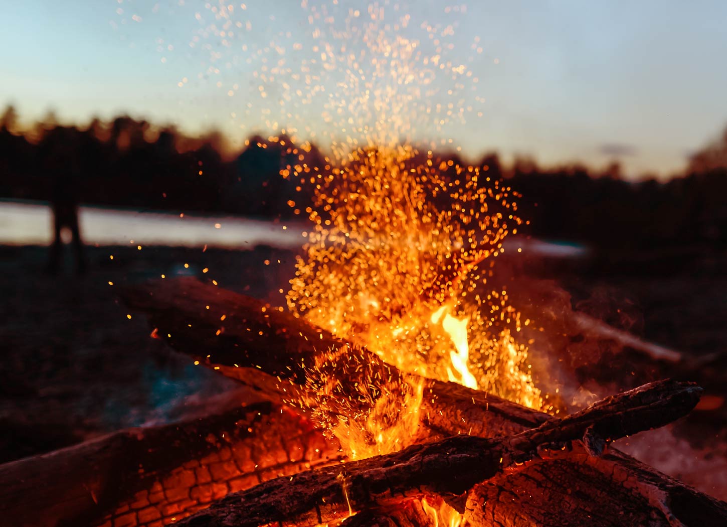 焚火の炎に癒やされる、至福の夕べを