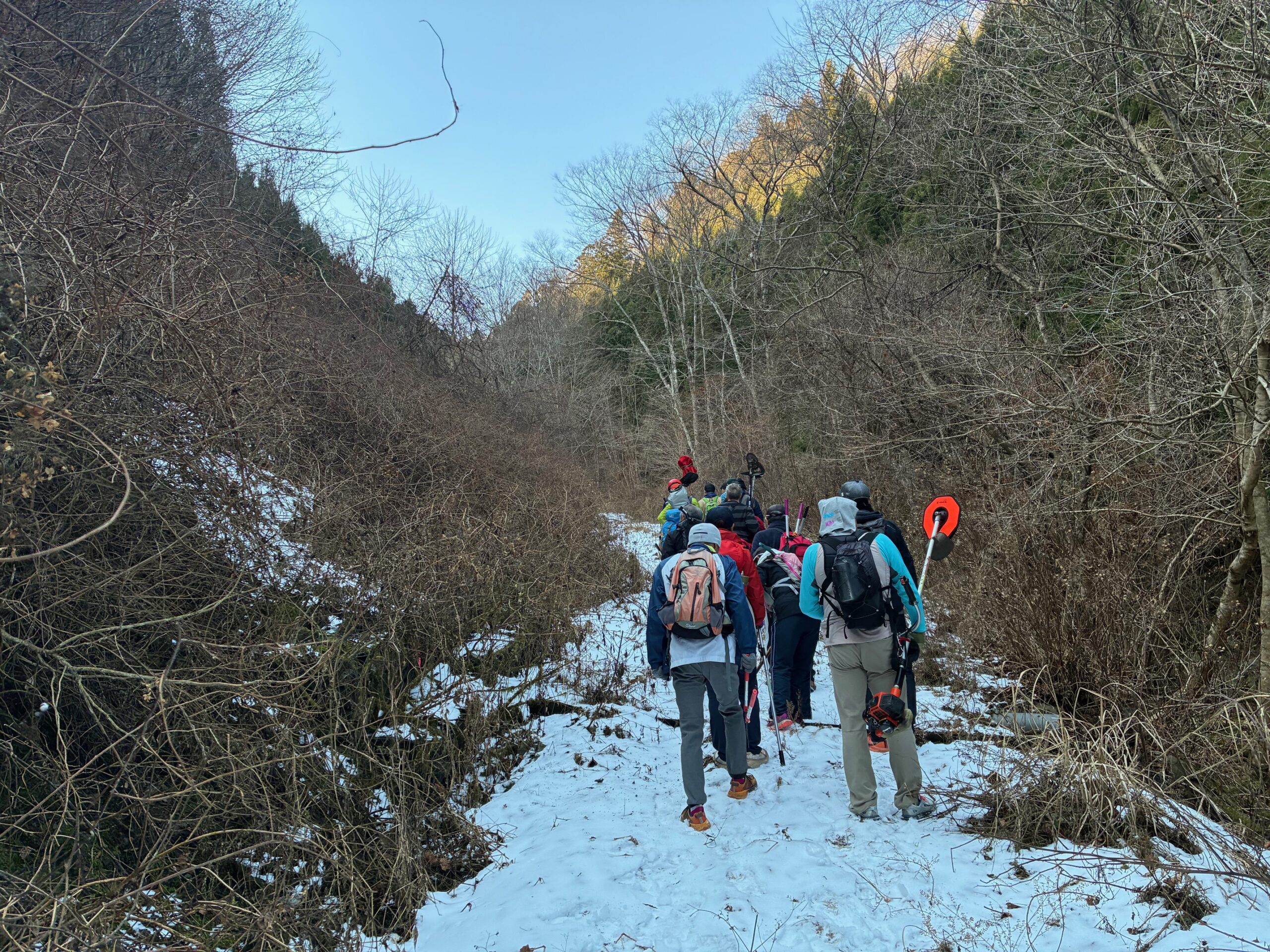 沢歩き、谷詰め、急登、稜線歩きと変化のある楽しいトレイルができました。