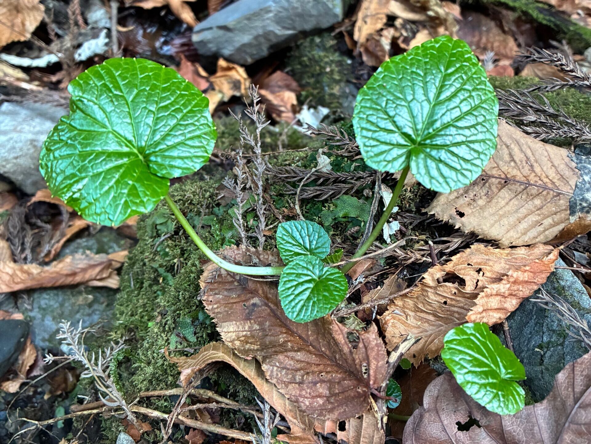 日かげの沢沿いに残雪が少しあり、はじめは寒く感じたものですが、体を動かすとちょうどいいくらいです。