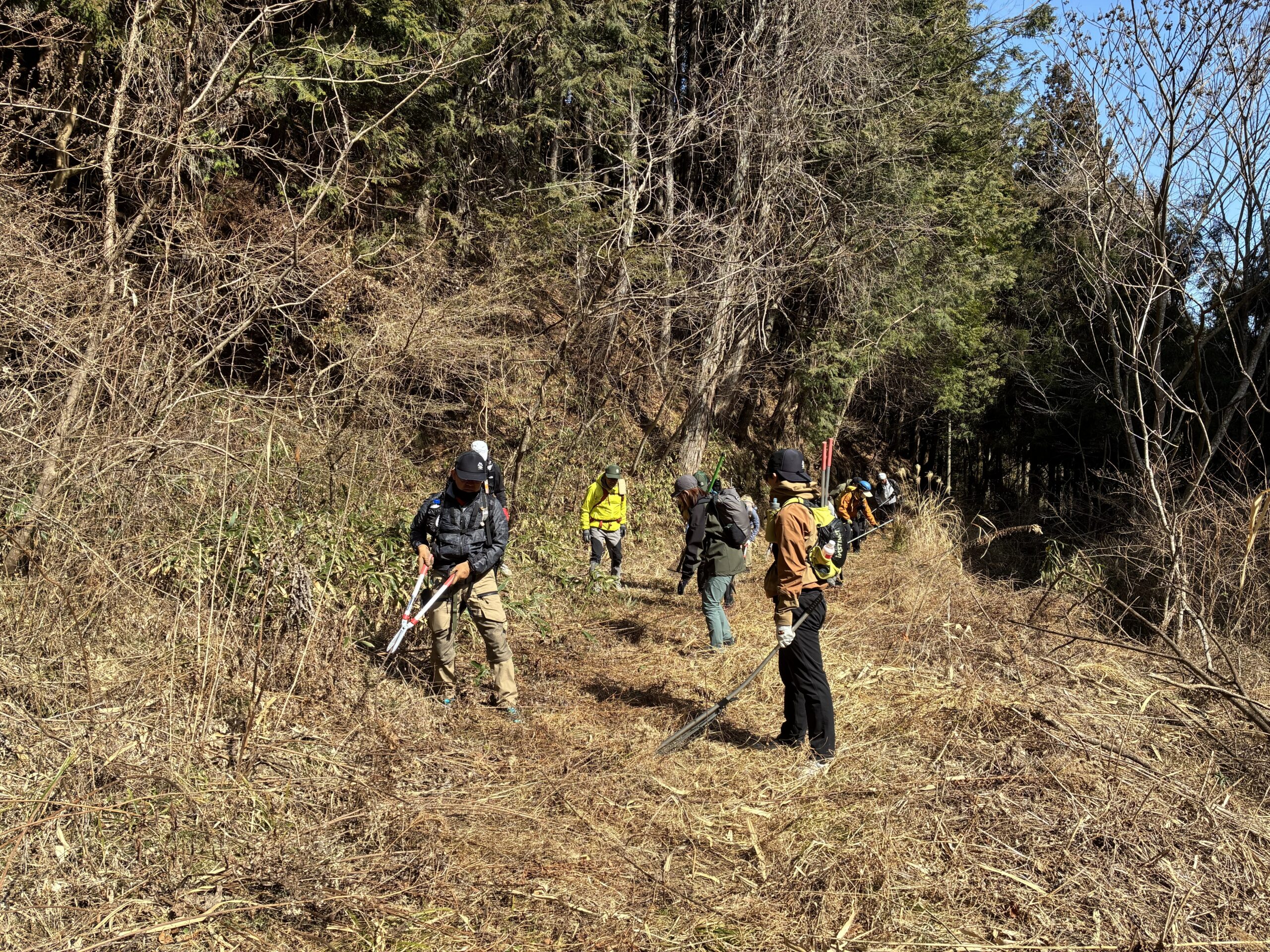 今回は、大子町西部の相川新田から沢沿いに上り、栃木との県境稜線にでてから南下して尺丈山に至る約4.9㎞区間の整備活動を行いました。